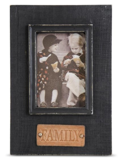 Black Wooden Picture Frame w/ YOU & ME Embossed Leather Tag