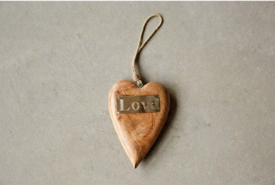 Mango Wood Hanging Heart w/ Metal "Love"