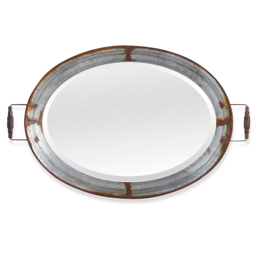 Metal Framed Oval Mirror Tray