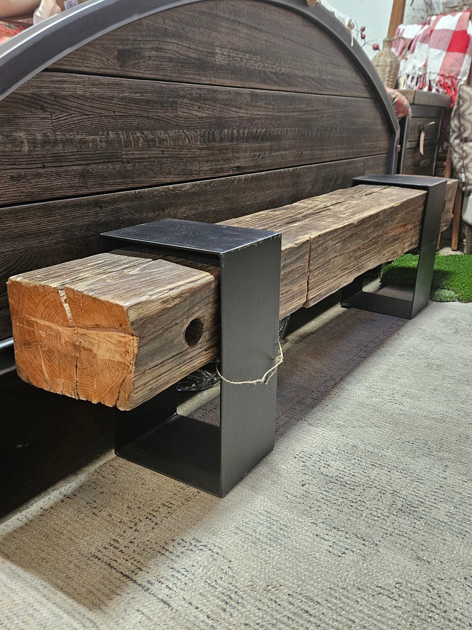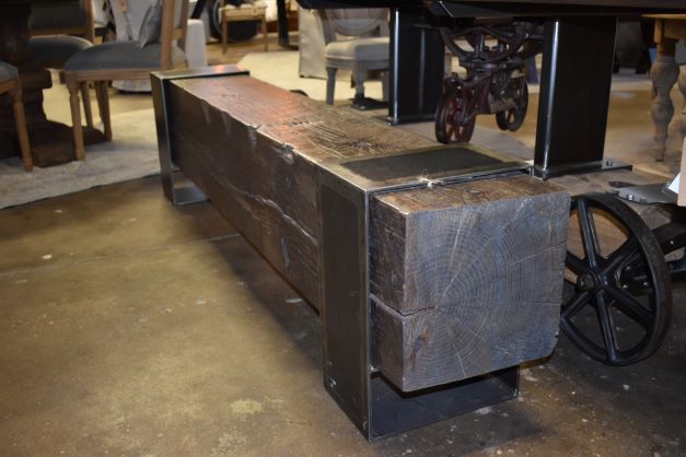 Unmistakable in its industrial chicness, The Blackwelder Bench is an expertly crafted statement piece crafted from large reclaimed construction timber and metal brackets. Its rich tones and bold lines give it a sense of timelessness, sure to elevate any room with its modern and sophisticated appeal.