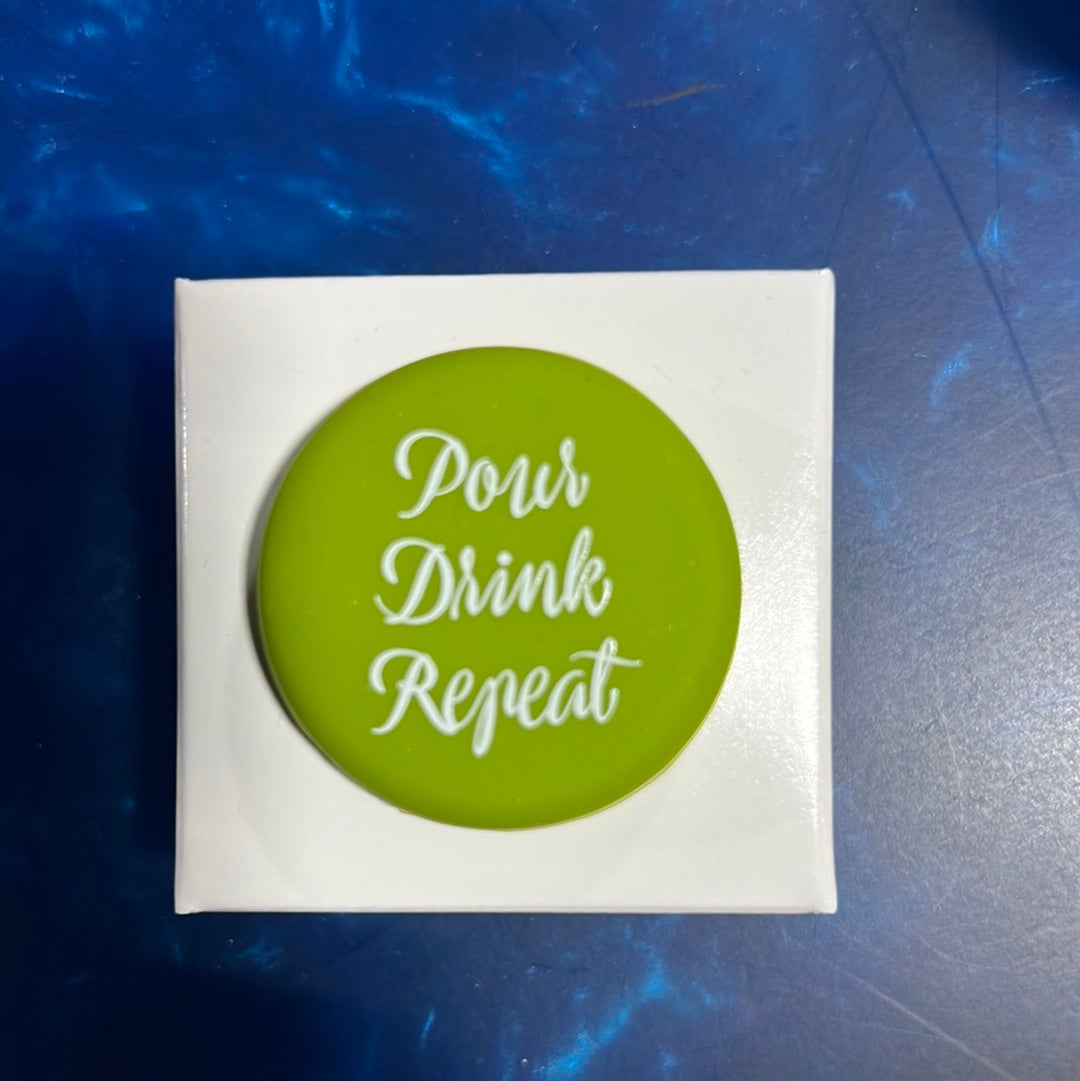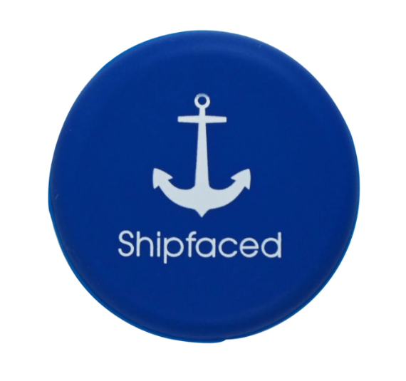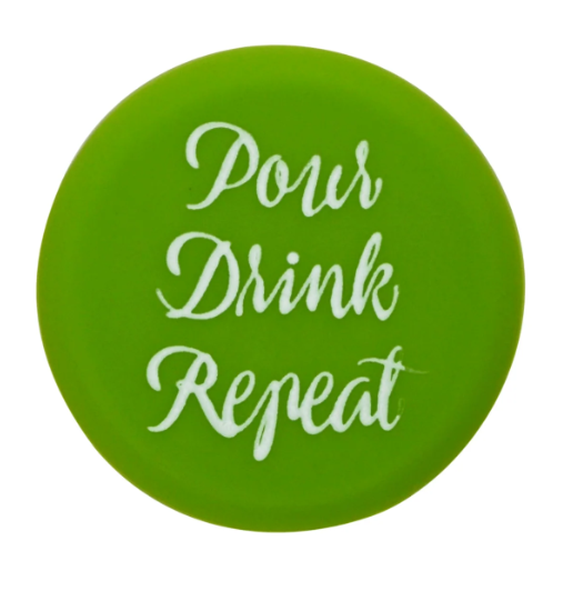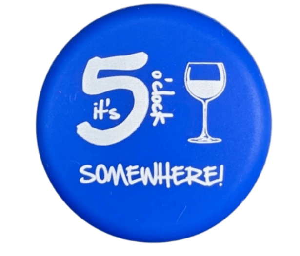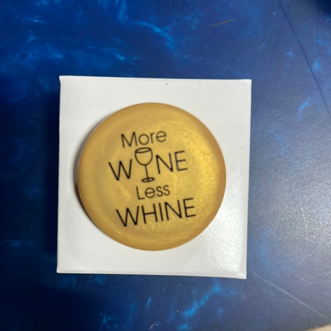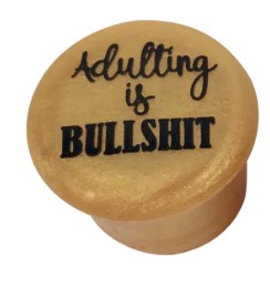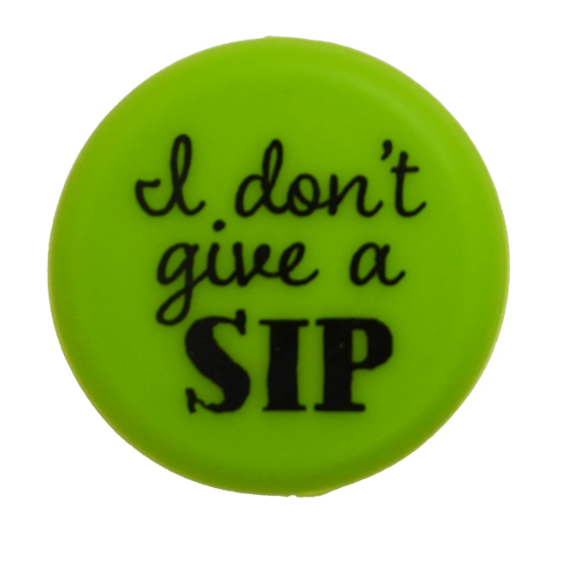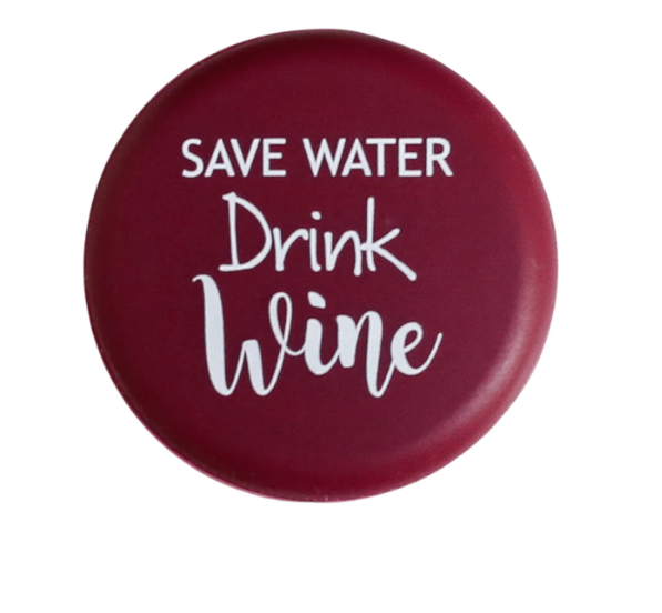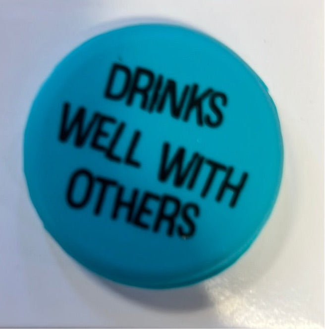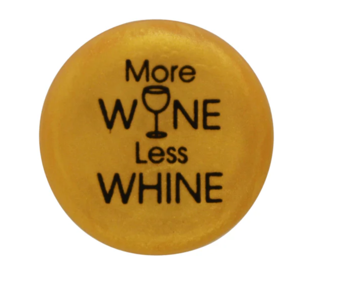 Wine bottle caps with witty sayings.