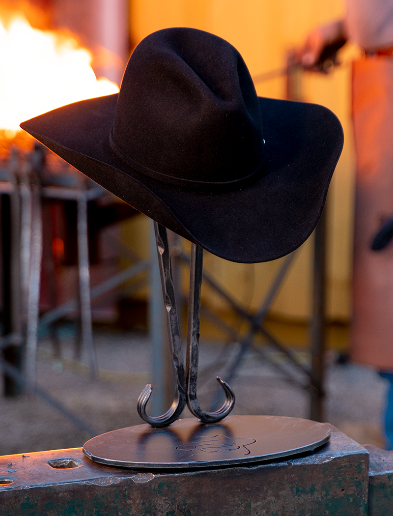 This standing tabletop hat stand is a great addition to your dresser or desk. It’s decorative yet functional design is available in two different styles. Each one is handcrafted in Oklahoma.