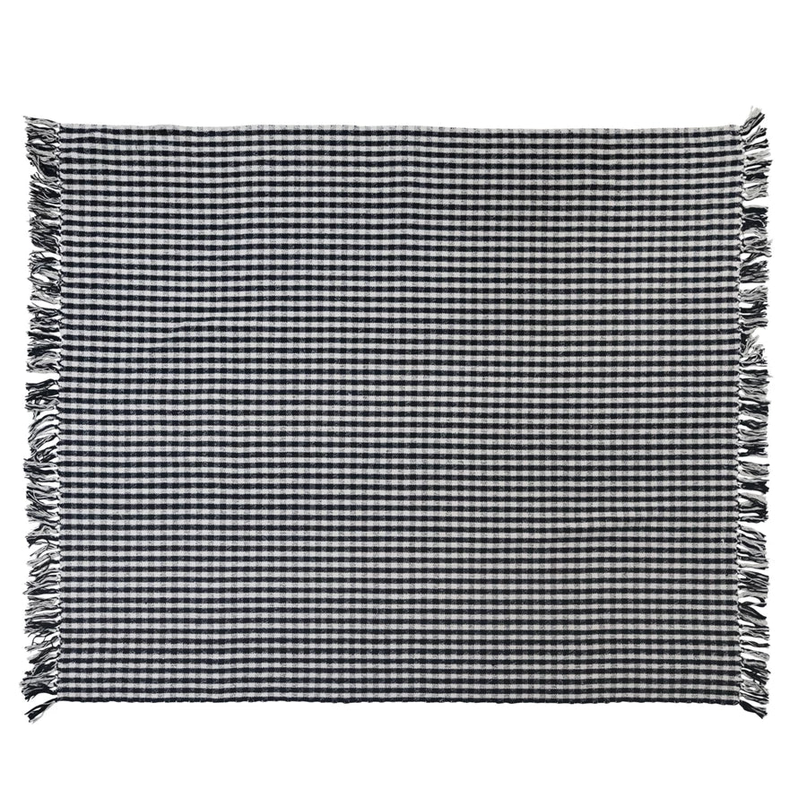 60"L x 50"W Woven Recycled Cotton Blend Throw w/ Fringe, Black Gingham