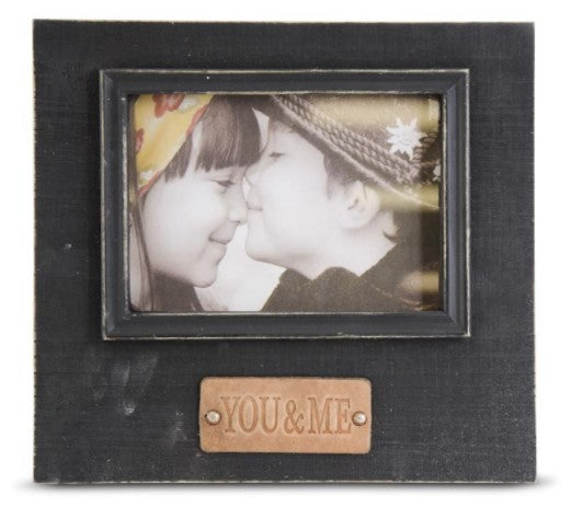 9.75" Wooden Picture Frame w/ 'You & Me' Embossed Leather Tag