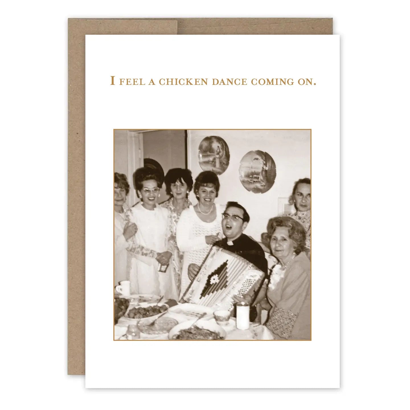 Inside Verse: Happy birthday! We need to celebrate accordion-ly. 4.5 x 6.25. Rich copper and sepia tones printed in the USA on FSC-certified, 100% recycled paper. Kraft envelopes made from 100% post-consumer paper.