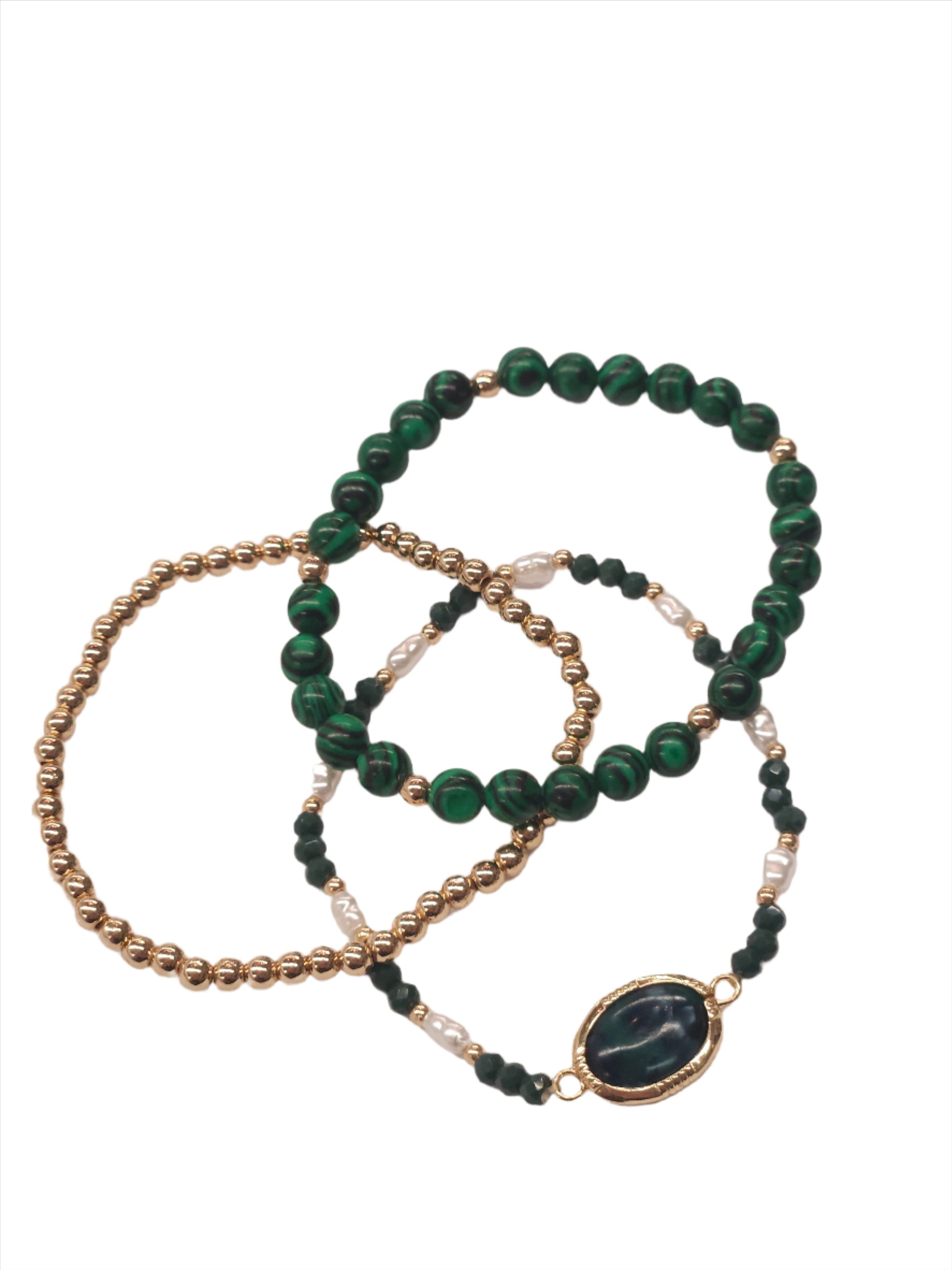 Elevate your style with this stunning Green and Gold Bracelet Stack! This must-have accessory features a beautiful combination of green and gold bracelets, perfect for adding a touch of elegance to any outfit.