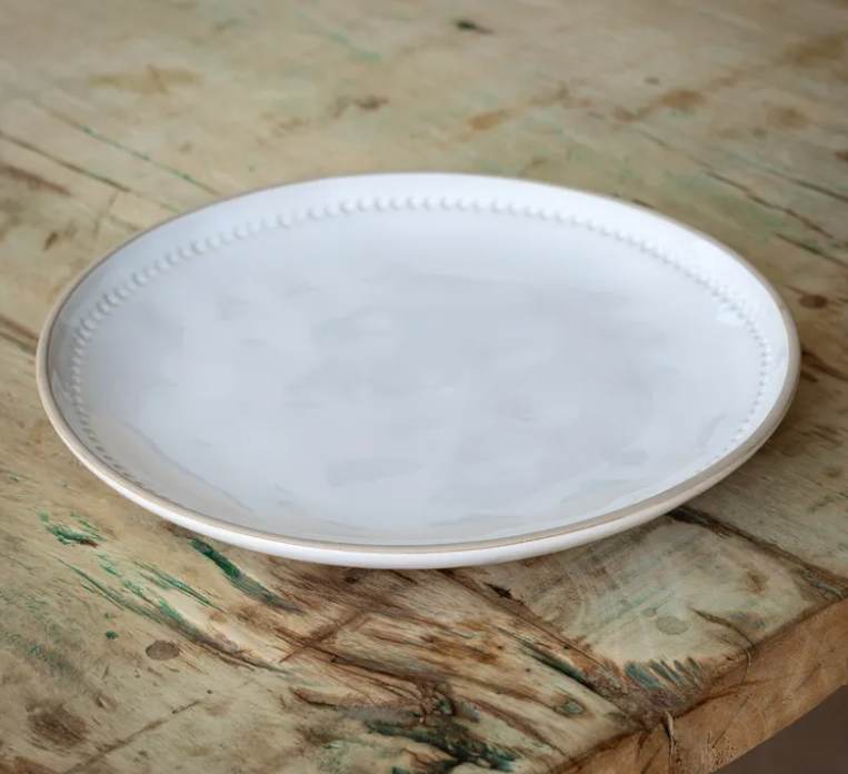In introducing our Isabella White stoneware dishes we loved the reactive glaze which makes each dish have it's own character. Our three colors are meant to be mixed together or used as one color if preferred. The 10" plate can be used as a charger or larger dinner plate.