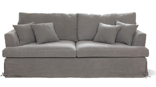 The soothing color of this soft blue-grey linen slip cover sofa compliments virtually any aesthetic. Comes complete with 4 matching pillows.