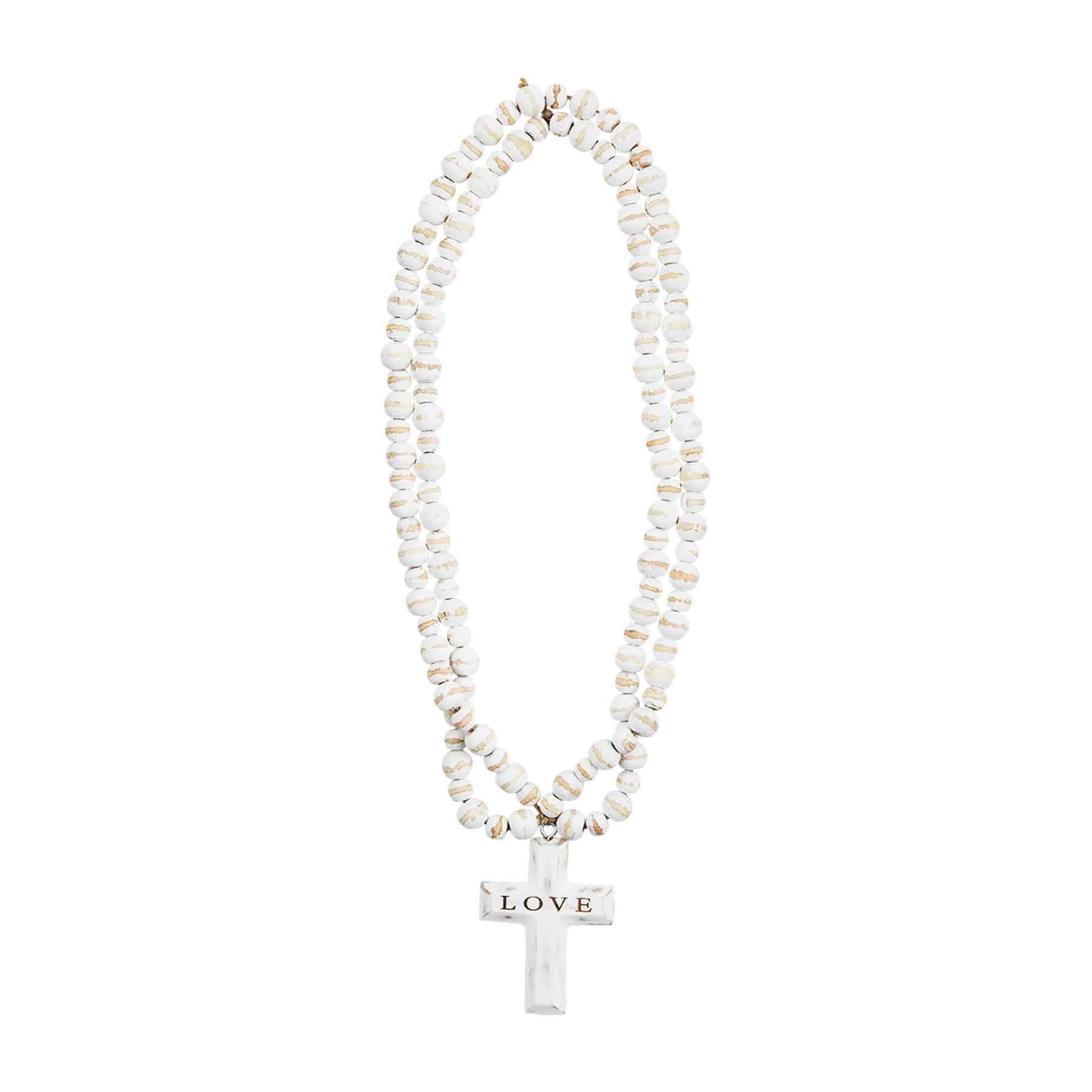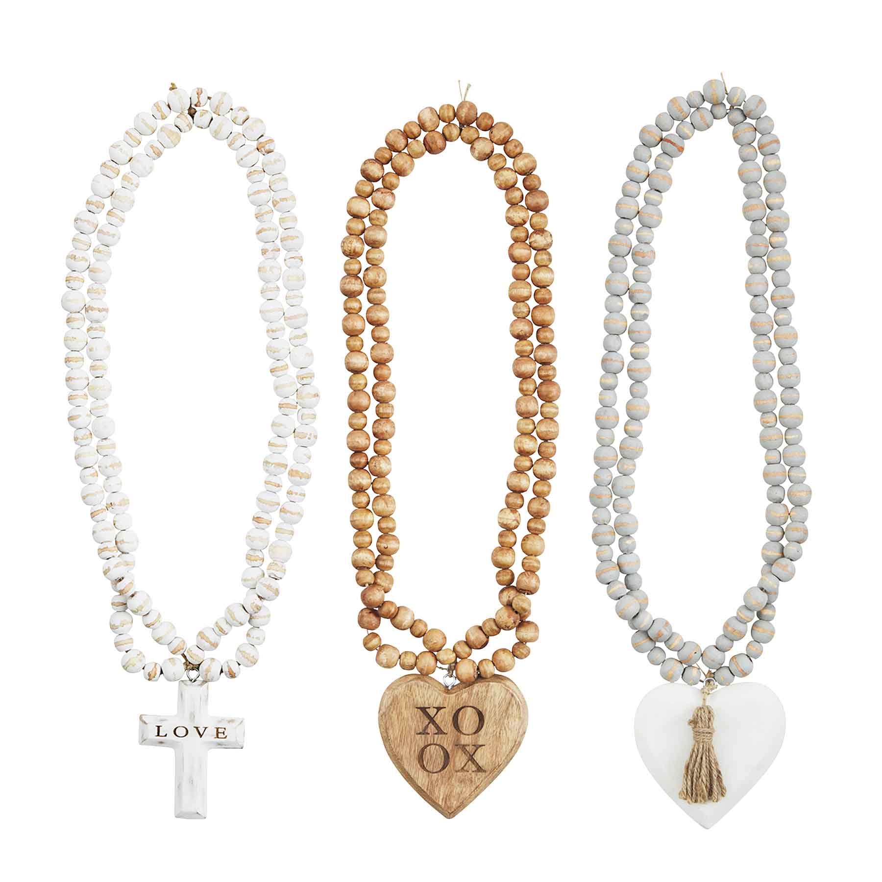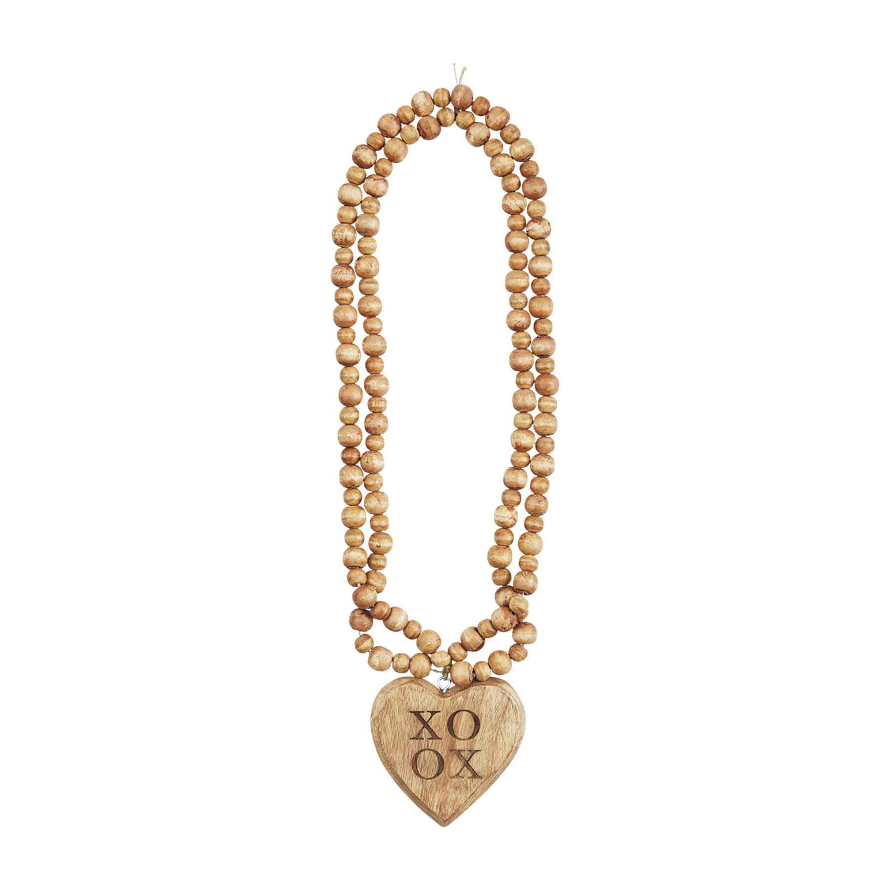 Mango wood beads on jute rope features etched mango wood or marble pendant.