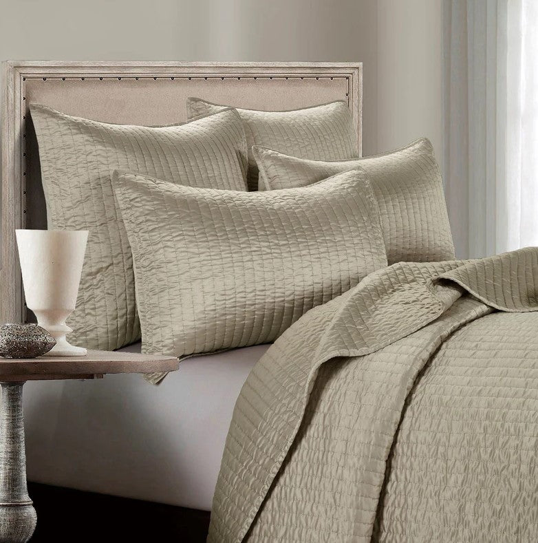 Sink into softness with our Satin Channel Quilt Set. With its rows of delicate needlework and luxurious satin construction, this quilt adds texture, comfort and dimension to any room. Layer with different hues of the same color for a refined look or with contrasting tones for added depth and character.